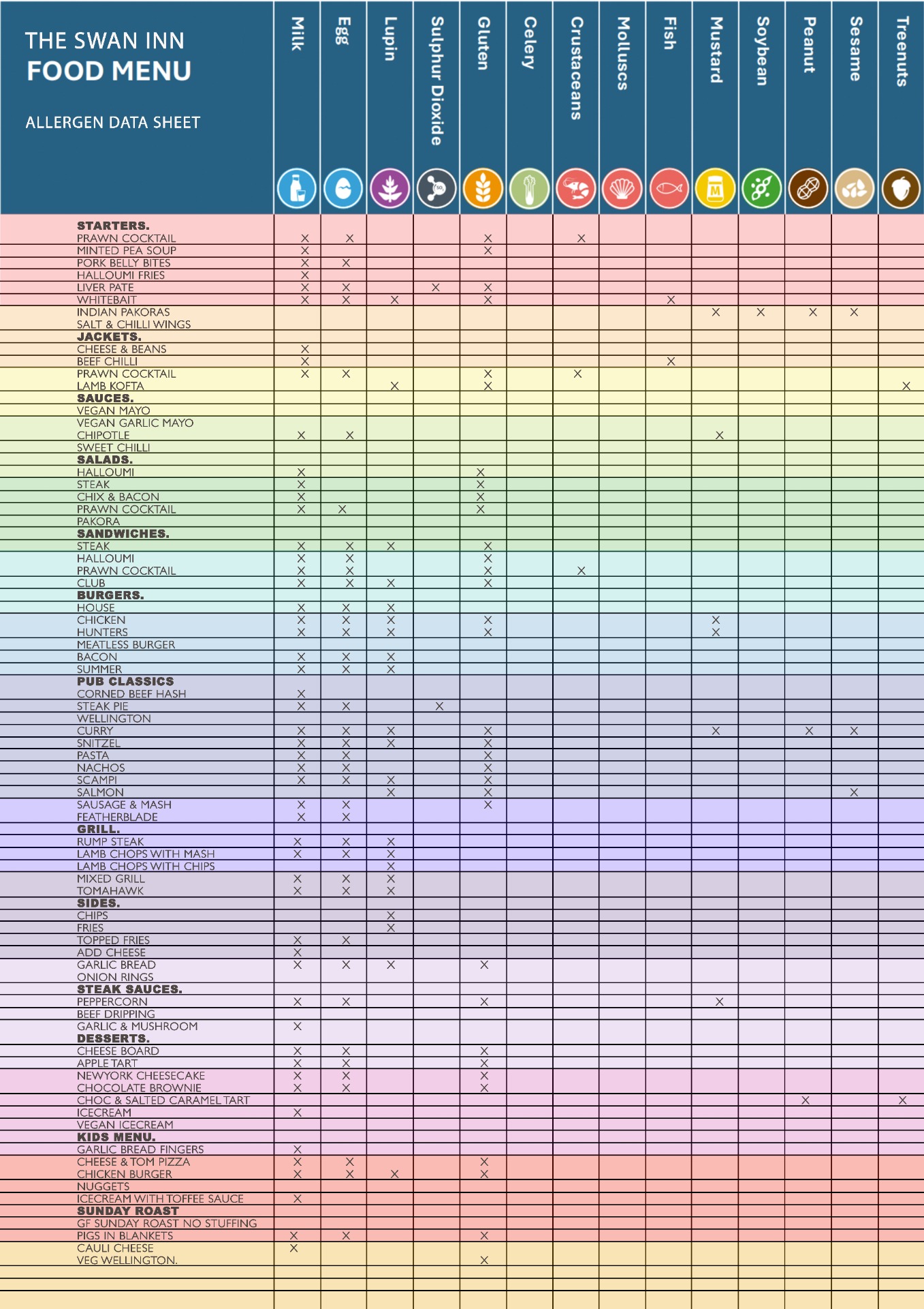 Please see our Allergen matrix for our menu, this will help you decide what meal you are going to enjoy with us.