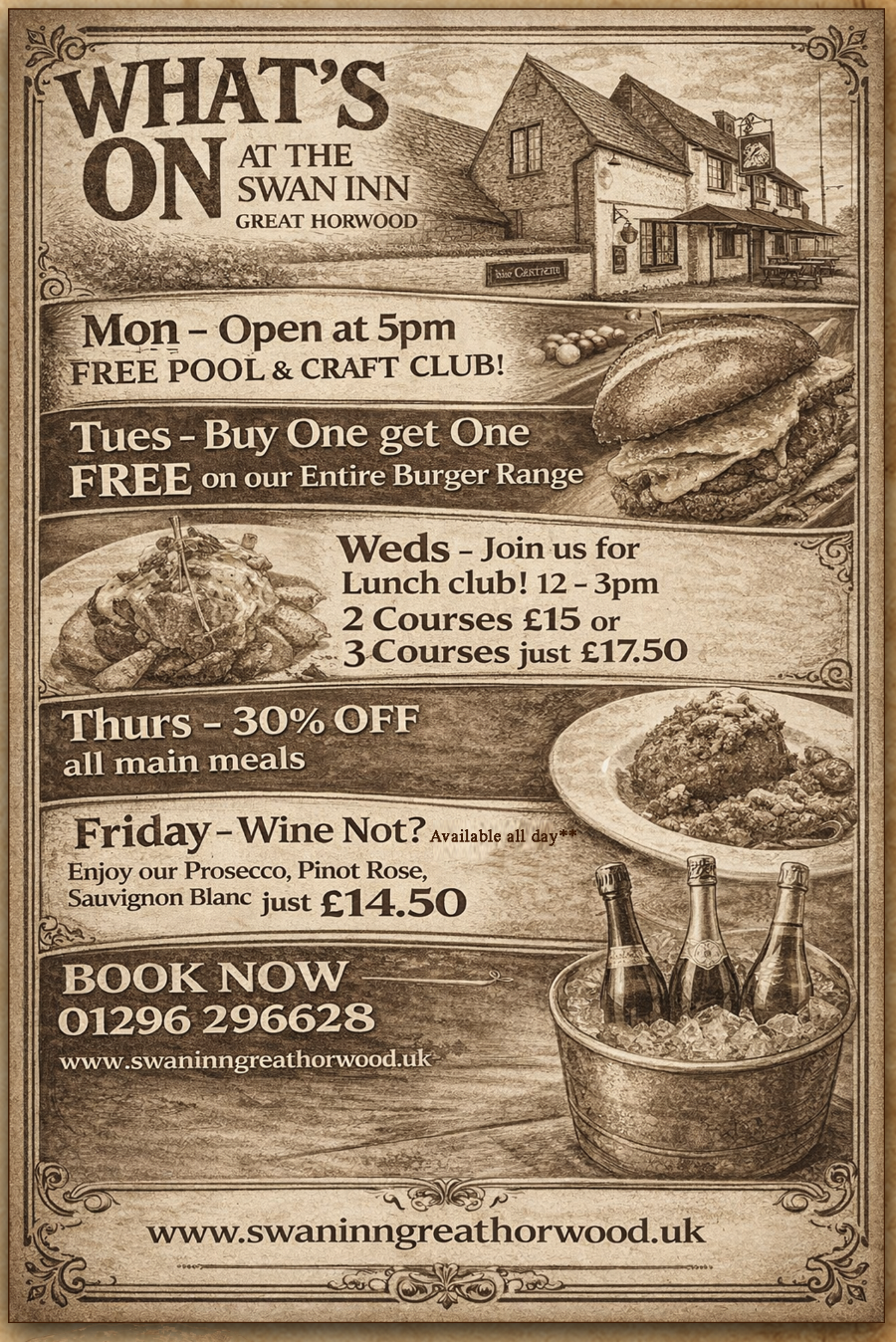 Thursday - Open from 5pm, enjoy our main menu, with an amazing '30% off all main meal'... Thursday is now the start of the weekend!
