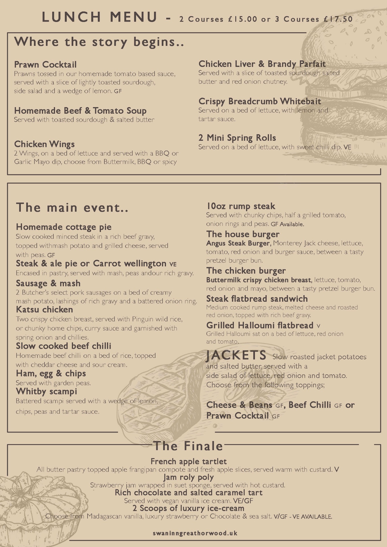 Our lunch menu is packed full of our favourites from our. main menu, just lunch sized portions, and what's even better? Two courses for £15.00 and